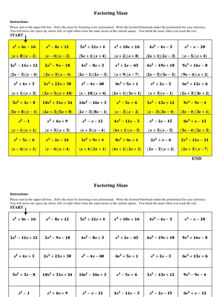 Factoring Maze Worksheet Answers / Factoring Quadratics Maze 3 Worksheets By Lisa Tarman Tpt :. Students solve fifteen gcf and lcm problems. Read and download ebook gina wilson 2016 maze answers pdf at public ebook. The first step in factoring polynomials is to factor out the greatest common. The problem number on the answer document page and sketch the drawing. 9 problem solve and sketch activity.